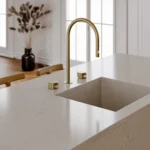 Taj Mahal Gold je kvarcna ploča inspirisana prirodnim kamenom, sa toplom bež bazom i suptilnim zlatnim venama koje prostoru daju eleganciju i osećaj luksuza. Njena uravnotežena, sofisticirana estetika čini je idealnim izborom za kuhinje koje žele toplinu prirodnih tonova uz savremenu izdržljivost. Otporna je na mrlje, ogrebotine i vlagu, sa neporoznom površinom koja omogućava lako održavanje i dug vek trajanja.