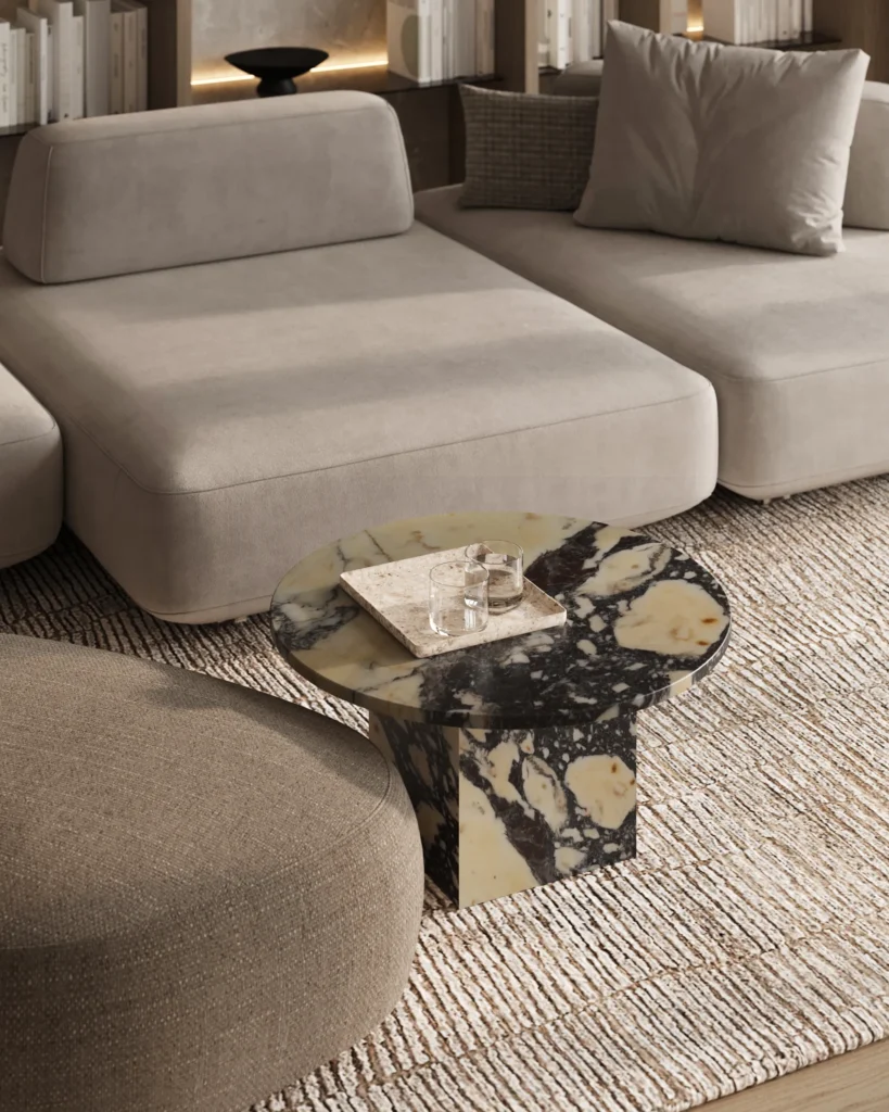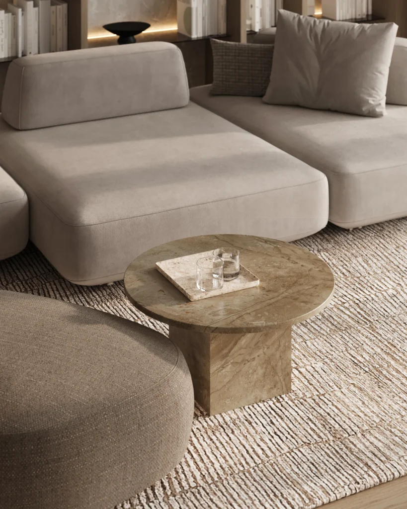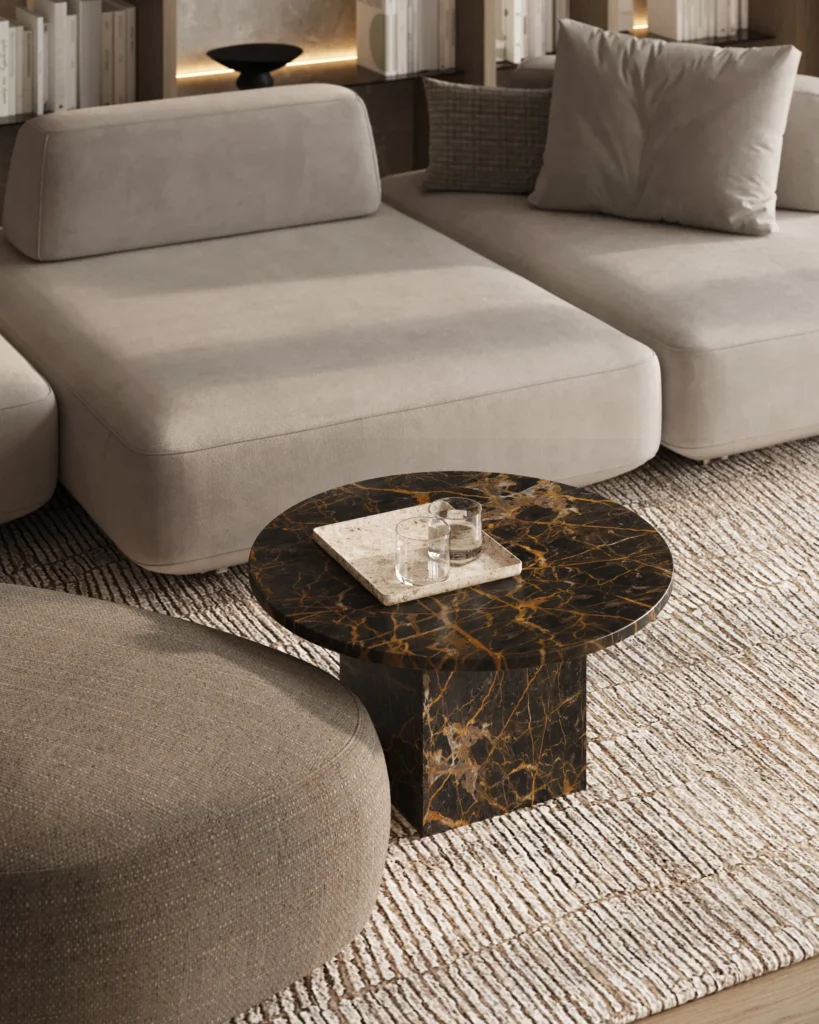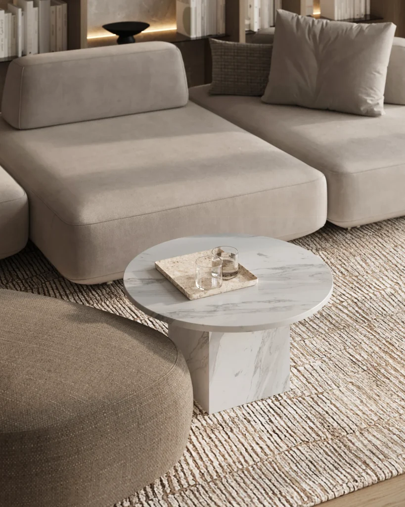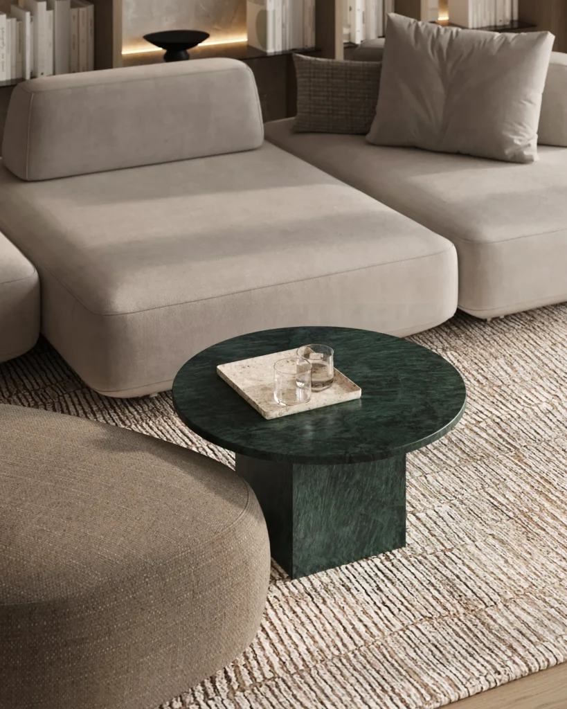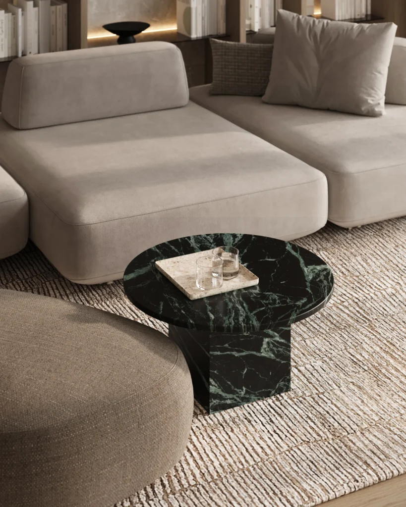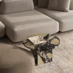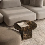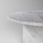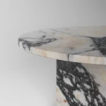 Ovaj klub sto od mermera odlikuje modernim dizajnom i jedinstvenom kockastom konstrukcijom koja unosi osećaj stabilnosti i geometrijske harmonije u prostor. Elegantna mermerna površina u kontrastu sa jednostavnom, kvadratnom bazom stvara upečatljiv vizuelni balans. Sa jasnim linijama i minimalizmom, ovaj sto savršeno pristaje modernim dnevnim sobama, donoseći eleganciju i funkcionalnost u svaku situaciju.