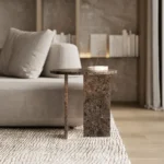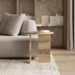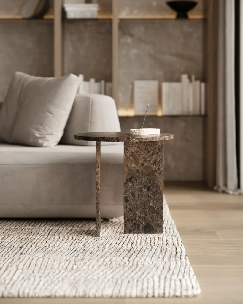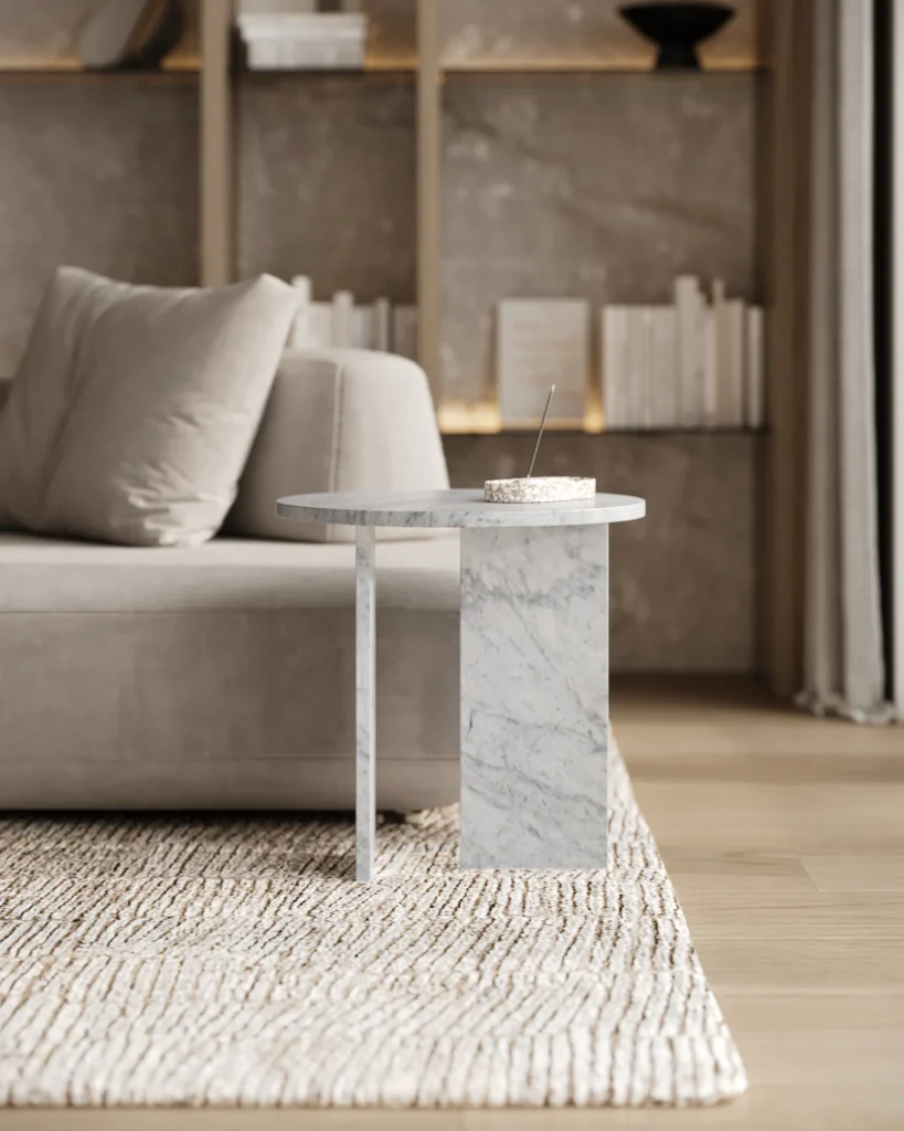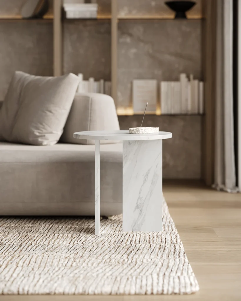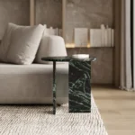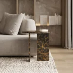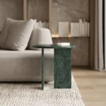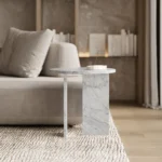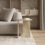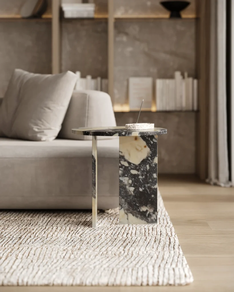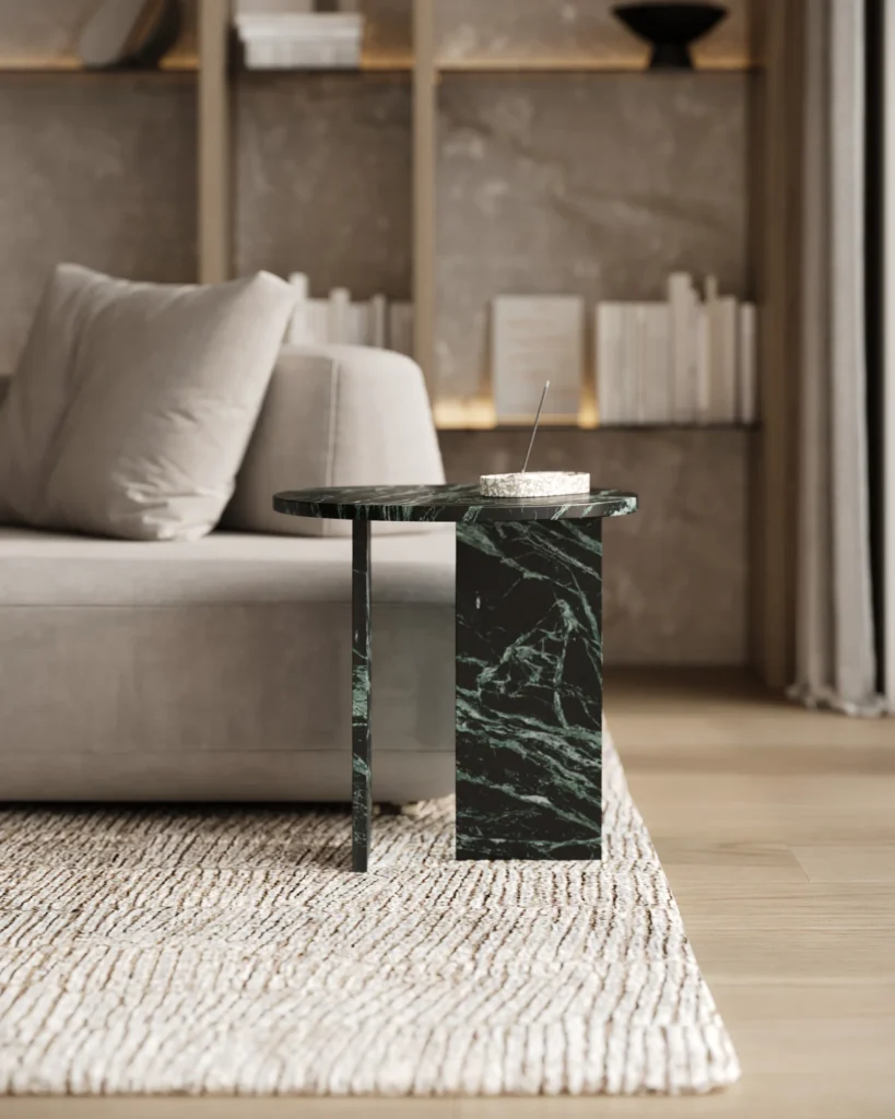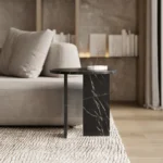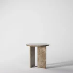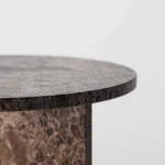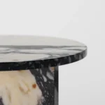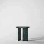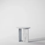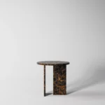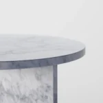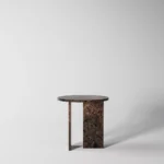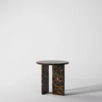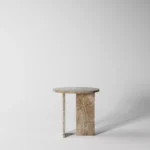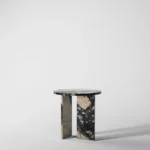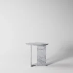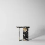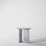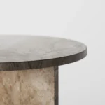 Ovaj side table, izrađen iz tri segmenta, donosi savršen spoj funkcionalnosti i modernog dizajna. Ploča stola je kružnog oblika i izrađena od visokokvalitetnog mermera, što mu daje sofisticiran i luksuzan izgled. Dve ploče koje služe kao nosioci stola dodaju stabilnost i čine ga impozantnim, dok istovremeno čine dizajn minimalističkim i elegantnim. Ovaj stol je savršen za svaki prostor, unoseći prirodnu lepotu mermera i modernu jednostavnost, dok se lako uklapa u različite stilove enterijera. Svojom čvrstom konstrukcijom i estetskom lakoćom, ovaj side table postaje ključni detalj u svakom prostoru.