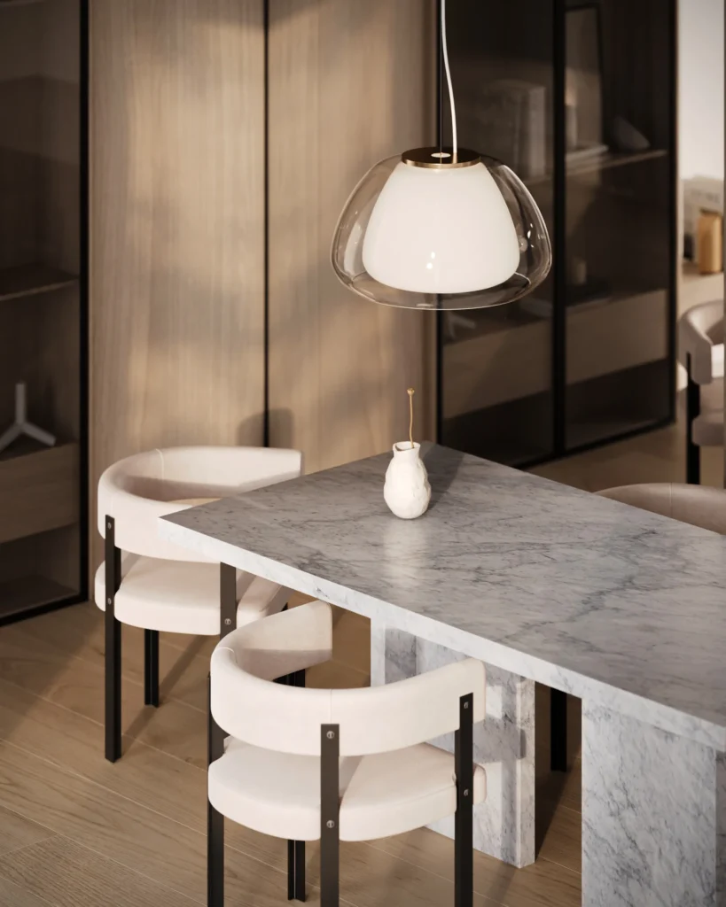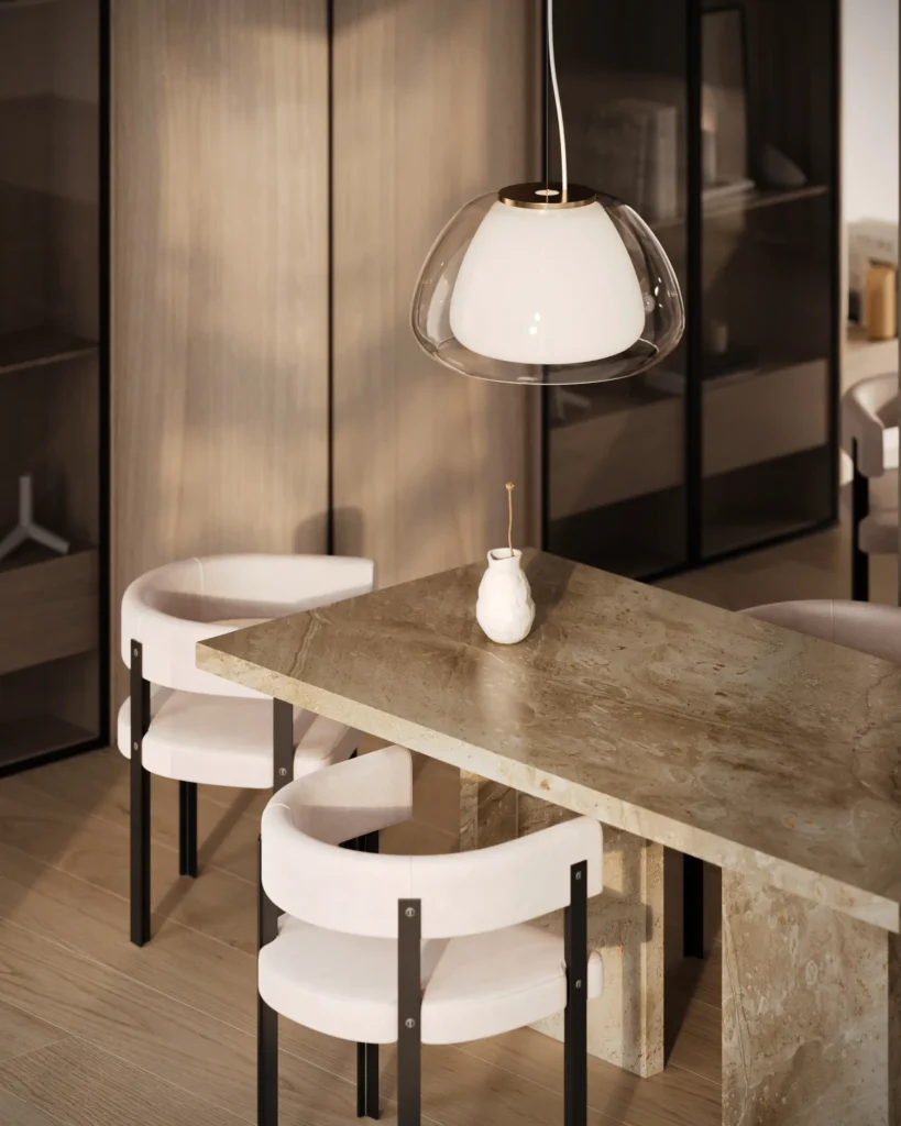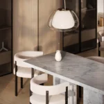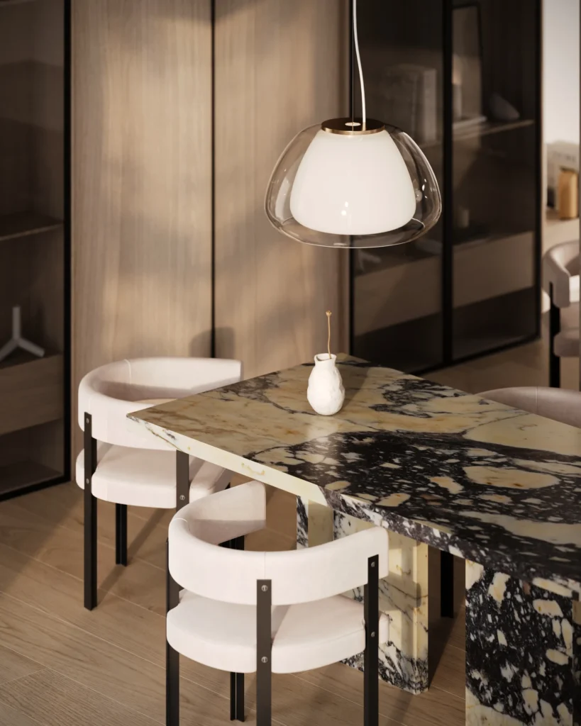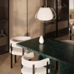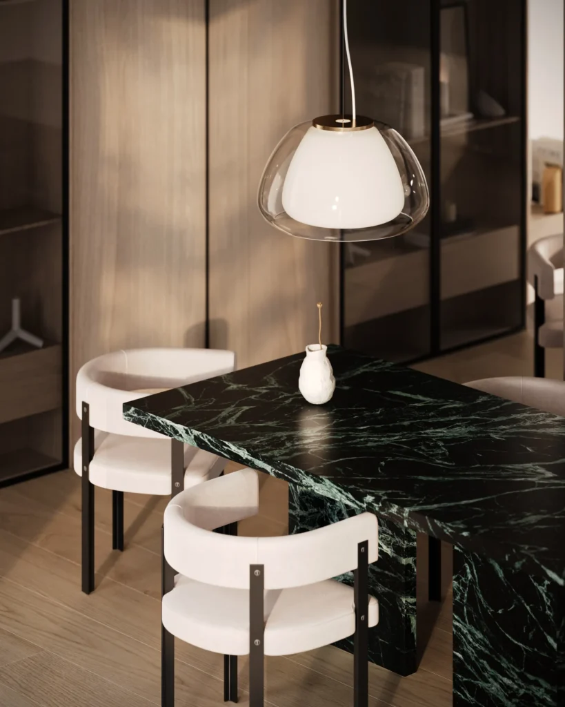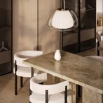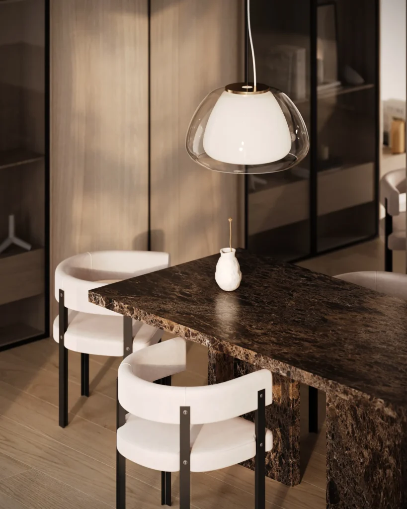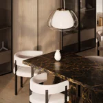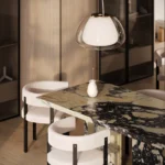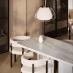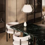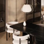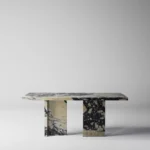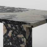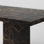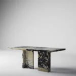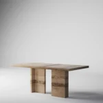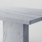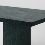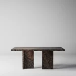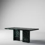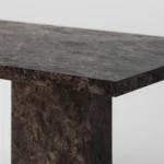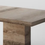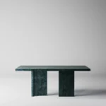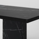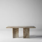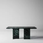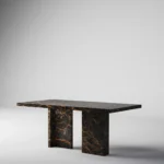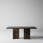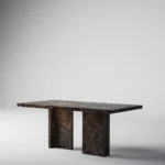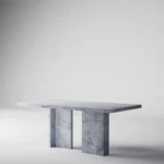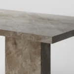 Trpezarijski sto Bordo se odlikuje jednostavnim, ali snažnim dizajnom. Dupla konstrukcija, koja se sastoji od masivnih vertikalnih nogu, osigurava stabilnost i dugotrajan kvalitet. Ploča stola je izrađena u ravnom obliku, što je čini minimalističkom i modernom, a istovremeno pruža dovoljno prostora za udoban obrok ili okupljanje. Kombinacija prirodnog kamena i čistih linija čini ovaj sto savršenim dodatkom za svaki enterijer, unoseći sofisticiranost i elegantan šarm.