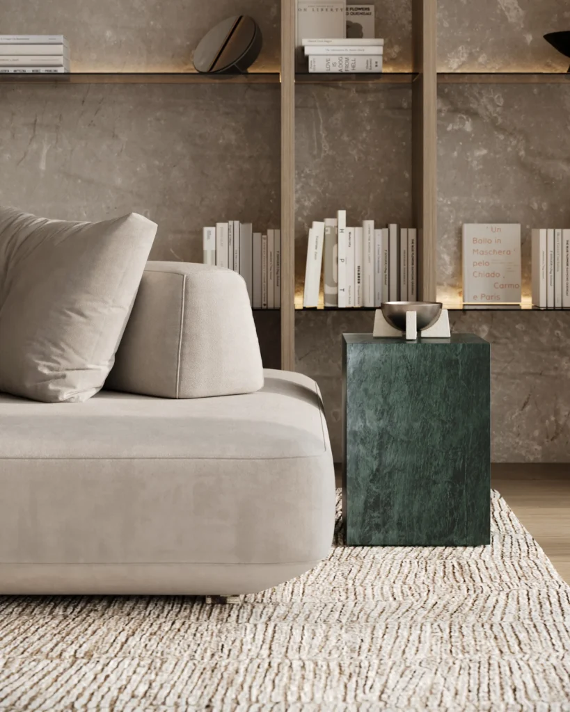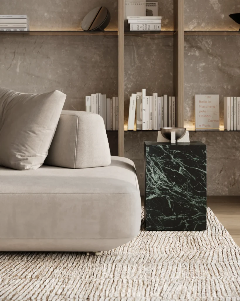 Ovaj manji kubus od kamena, iako kompaktnijih dimenzija, zadržava sve karakteristike većeg modela i savršeno funkcioniše kao ukrasni element u prostoru. I dalje izrađen od visokokvalitetnog mermera, ovaj kubus pruža istu robusnost i eleganciju, čineći ga idealnim za male prostore ili kao dodatak uz veće komade nameštaja. Bez obzira na svoju veličinu, Element model i dalje ima snažan vizuelni utisak i unosi luksuznu jednostavnost, čineći ga neizostavnim detaljem svakog modernog enterijera.
