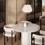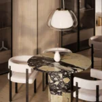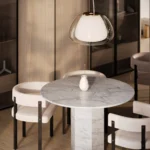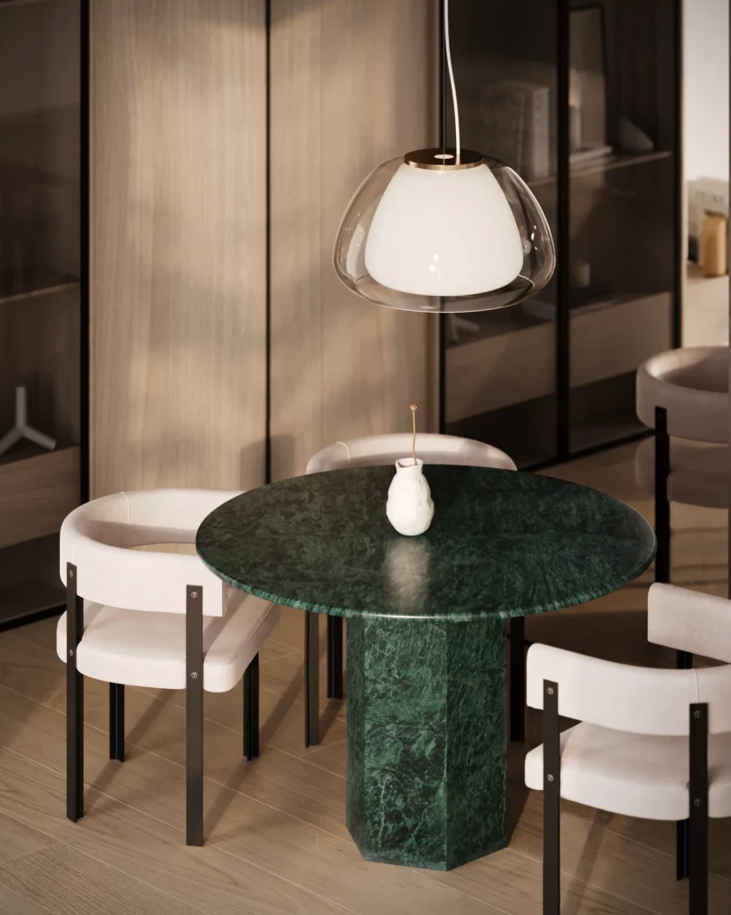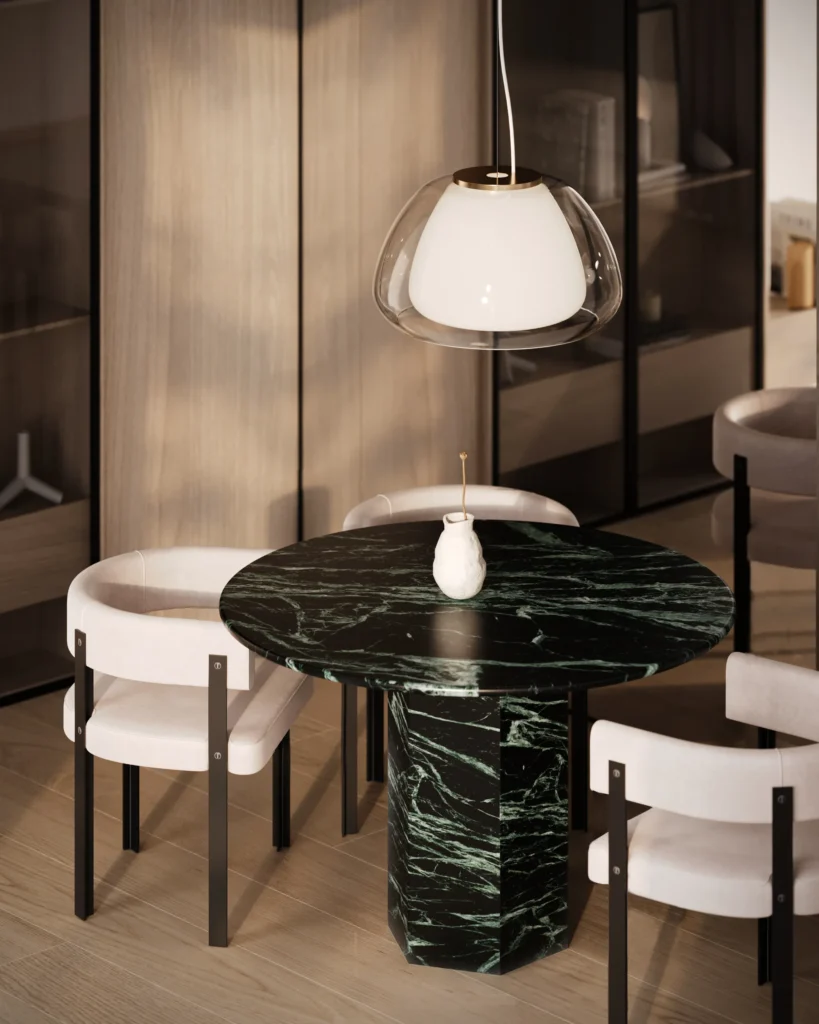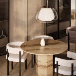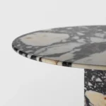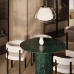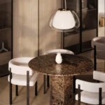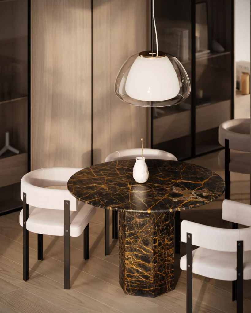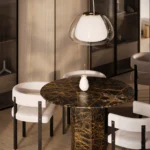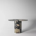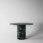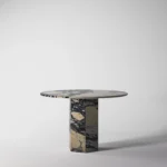 Trpezarijski sto Fortia ističe se jednostavnošću i bezvremenskom elegancijom. Njegova centralno postavljena baza od mermera pruža stabilnost i čvrstinu, dok ravna, blago zaobljena ploča dodaje dozu suptilne sofisticiranosti. Prirodni šari mermera unose jedinstvenu dinamiku u dizajn, čineći svaki komad unikatnim. Zahvaljujući savršenom spoju minimalizma i luksuza, Fortia je idealan izbor za moderne trpezarije koje teže jednostavnosti, funkcionalnosti i estetici.