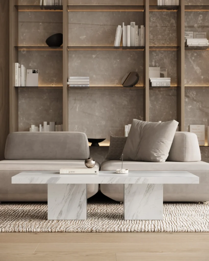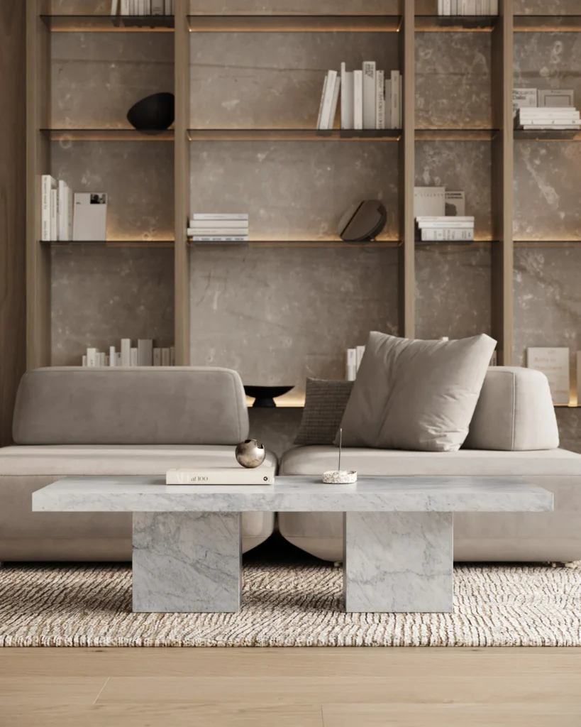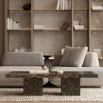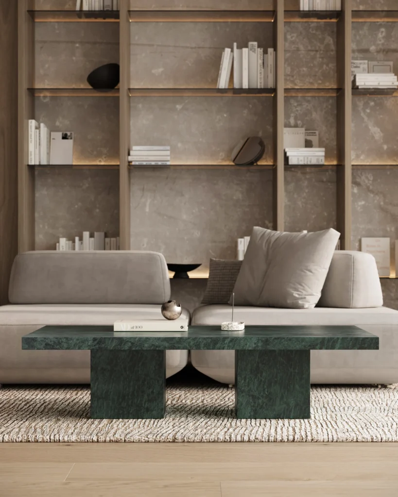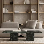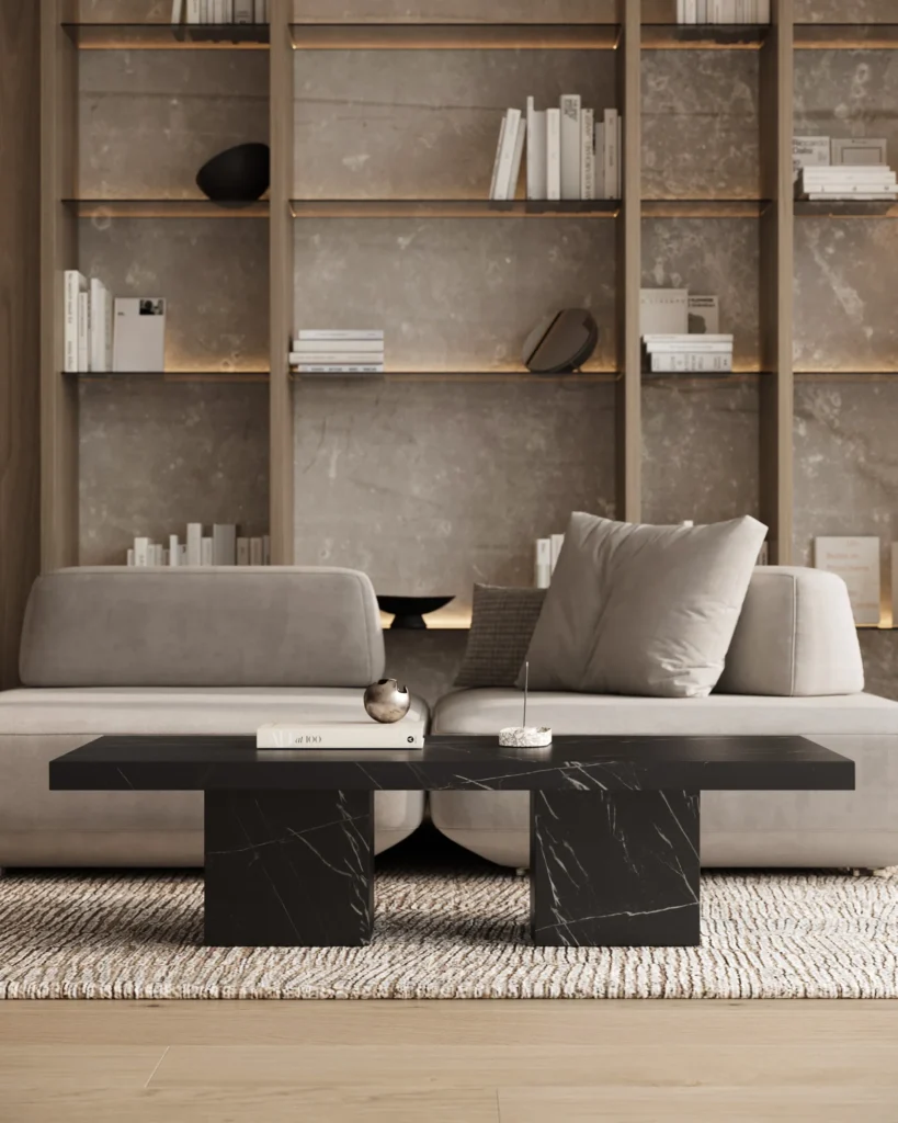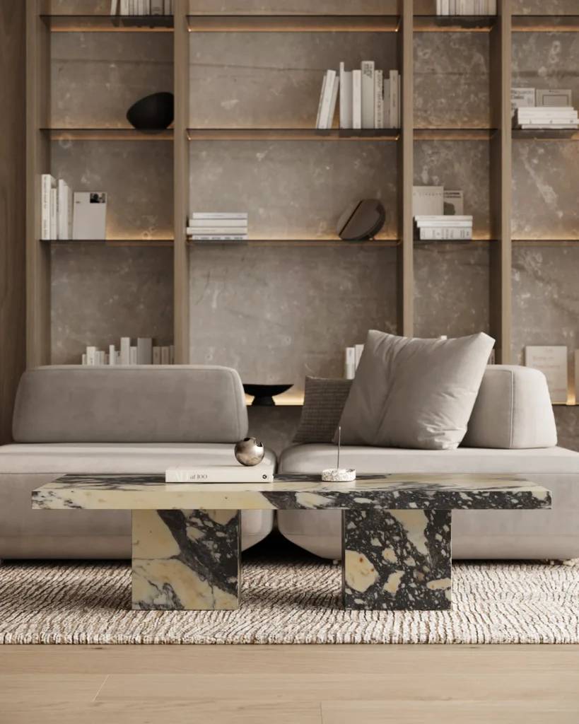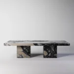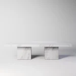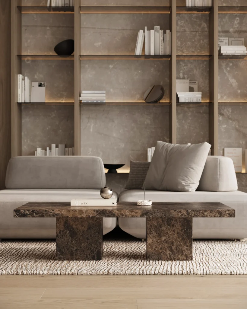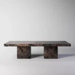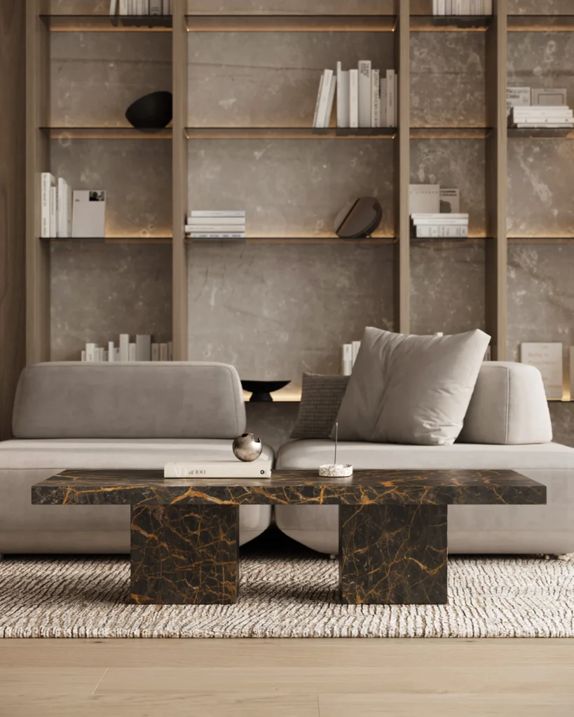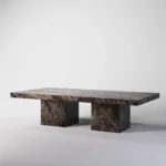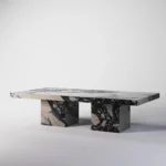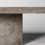 Imperio se izdvaja jedinstvenom kockastom bazom i četvrtastom pločom, koja zahvaljujući gerovanim (podebljanim) ivicama dobija dodatni vizuelni efekat masivnosti. Sa modernim i minimalističkim pristupom, sto kombinuje čiste linije i luksuzni mermer, čineći ga savršenim akcentom u vašoj dnevnoj sobi. Njegova stabilna konstrukcija i bogata tekstura kamena unose sofisticiranost i eleganciju u prostor, dok gerovana ivica dodatno naglašava luksuzan karakter ovog komada.