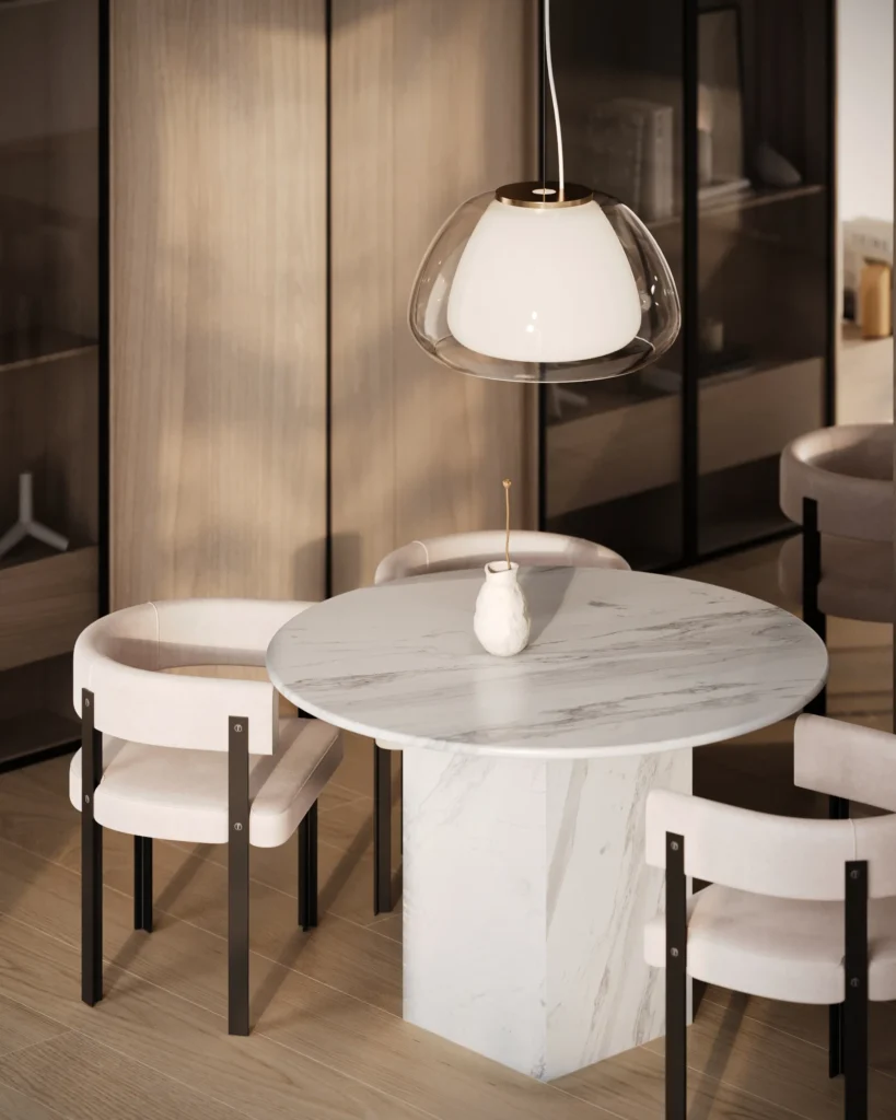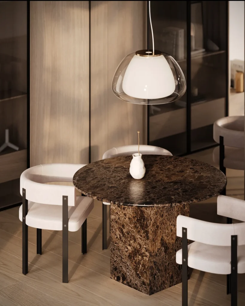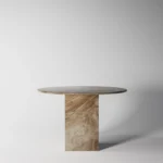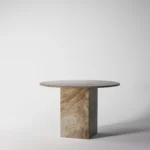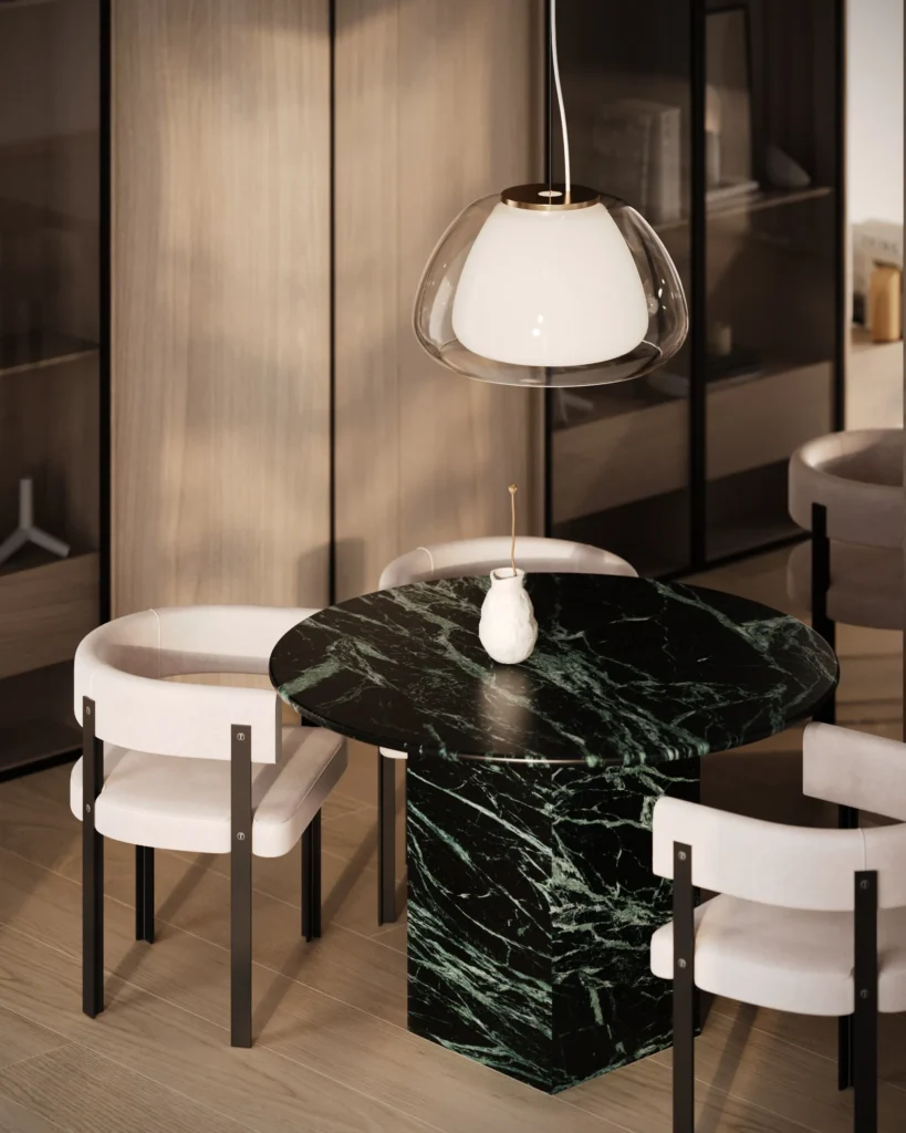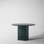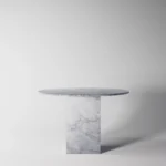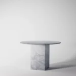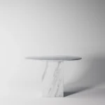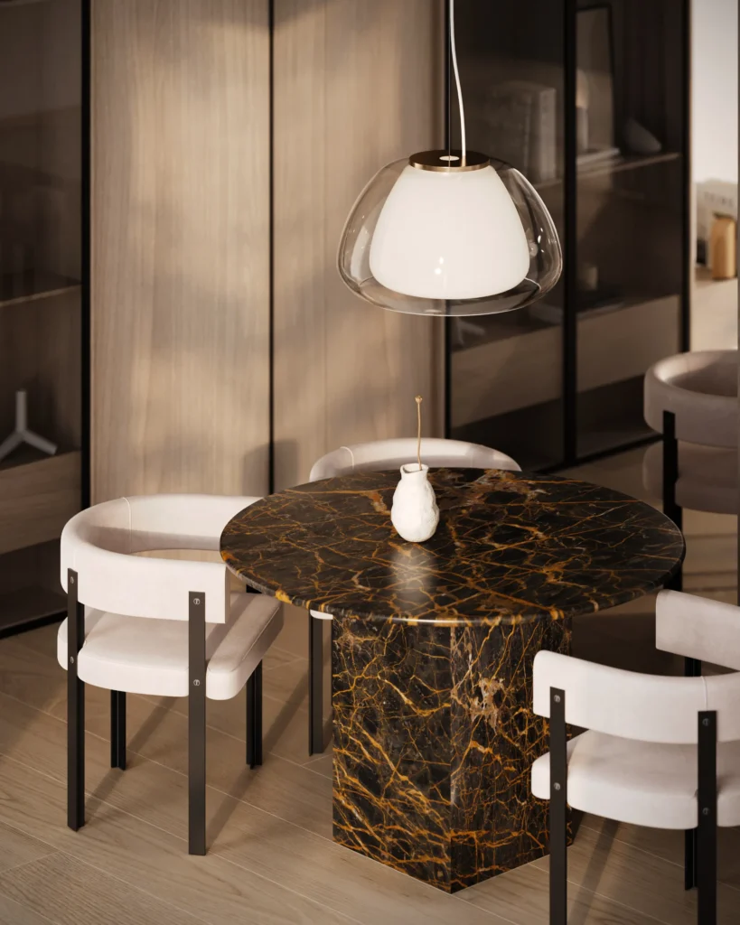 Trpezarijski sto Marmona donosi suptilnu eleganciju kroz pažljivo osmišljen dizajn i vrhunski mermer. Njegova konstrukcija kombinuje čistu, geometrijsku formu sa centralnom bazom koja pruža stabilnost i vizuelnu ravnotežu. Ploča stola ističe se gerovanim ivicama koje imitiraju masivnost, stvarajući utisak luksuza uz očuvanu lakoću forme. Prirodne šare mermera čine svaki sto jedinstvenim, dok njegov jednostavan, ali robustan izgled omogućava lako uklapanje u različite stilove enterijera. Marmona je savršen spoj vrhunskog dizajna i funkcionalnosti za vašu trpezariju.