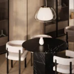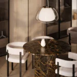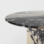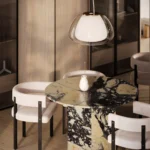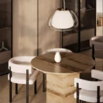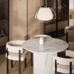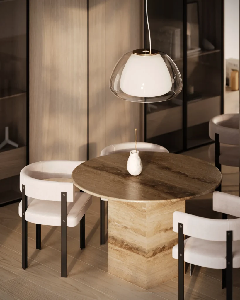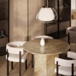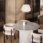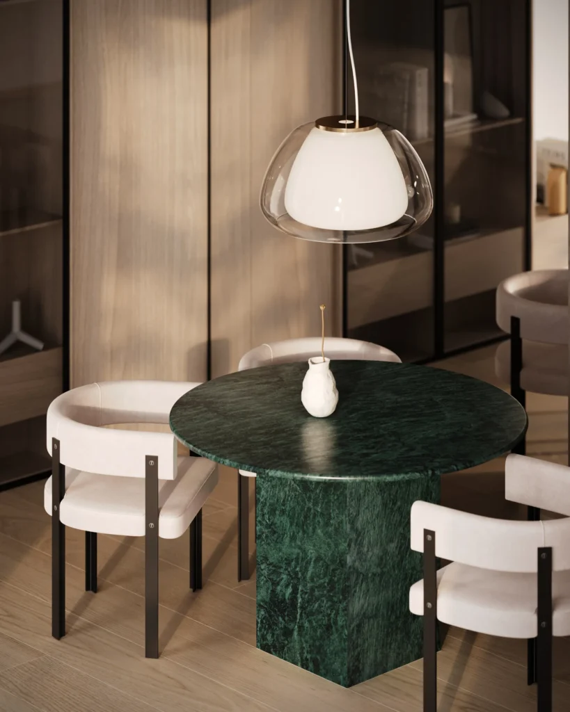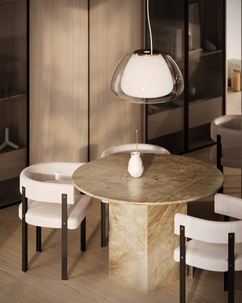 Trpezarijski sto Marmona donosi suptilnu eleganciju kroz pažljivo osmišljen dizajn i vrhunski mermer. Njegova konstrukcija kombinuje čistu, geometrijsku formu sa centralnom bazom koja pruža stabilnost i vizuelnu ravnotežu. Ploča stola ističe se gerovanim ivicama koje imitiraju masivnost, stvarajući utisak luksuza uz očuvanu lakoću forme. Prirodne šare mermera čine svaki sto jedinstvenim, dok njegov jednostavan, ali robustan izgled omogućava lako uklapanje u različite stilove enterijera. Marmona je savršen spoj vrhunskog dizajna i funkcionalnosti za vašu trpezariju.