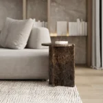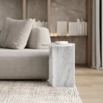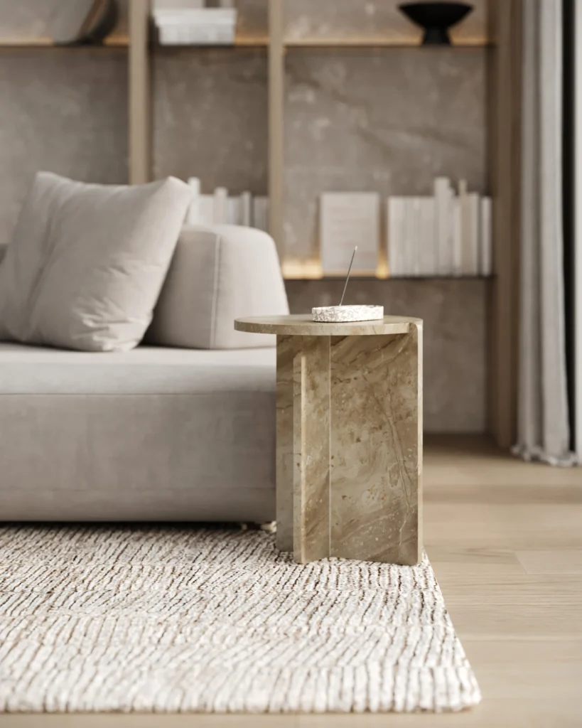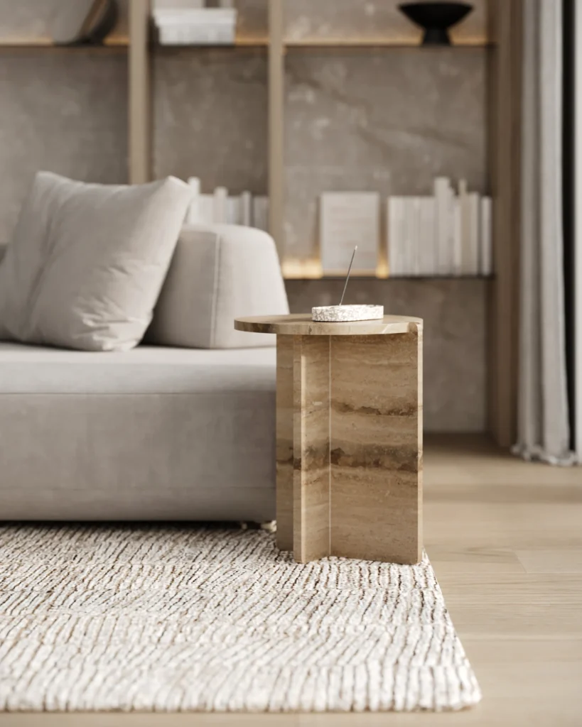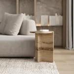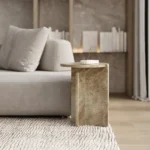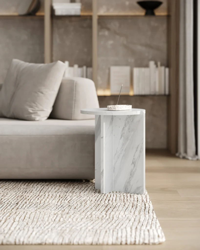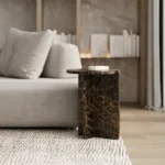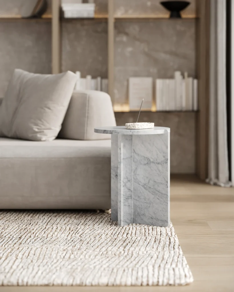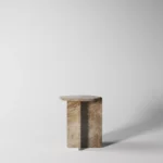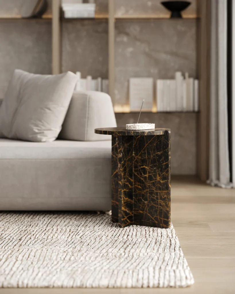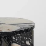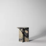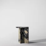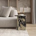 Ovaj specifični pomoćni stočić je pravi izraz modernog dizajna, sa prelepo izbalansiranom konstrukcijom koja kombinuje metal i mermer. Sa metalnim okvirom koji nosi dve ploče od mermera, stočić formira krug iz dva segmenta, što daje interesantan i neobičan vizuelni efekat. Minimalistički oblik, zajedno sa elegantnom mešavinom materijala, čini ga ne samo funkcionalnim, već i izuzetno atraktivnim dodatkom svakom enterijeru. Ovaj stočić je savršen za prostore koji traže sofisticiranost i originalnost, dodajući im moderan i luksuzan šarm.