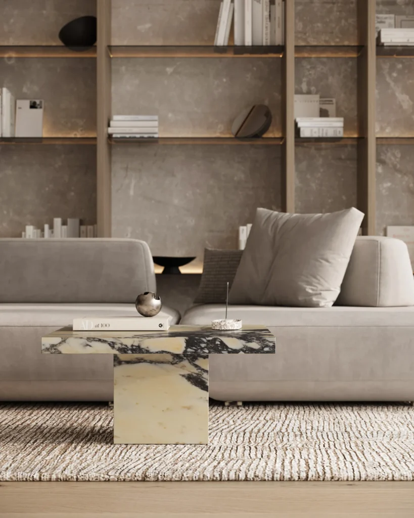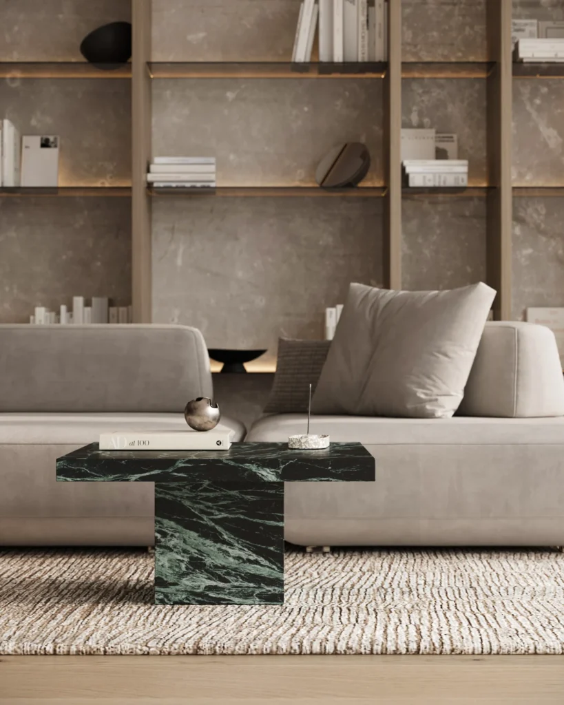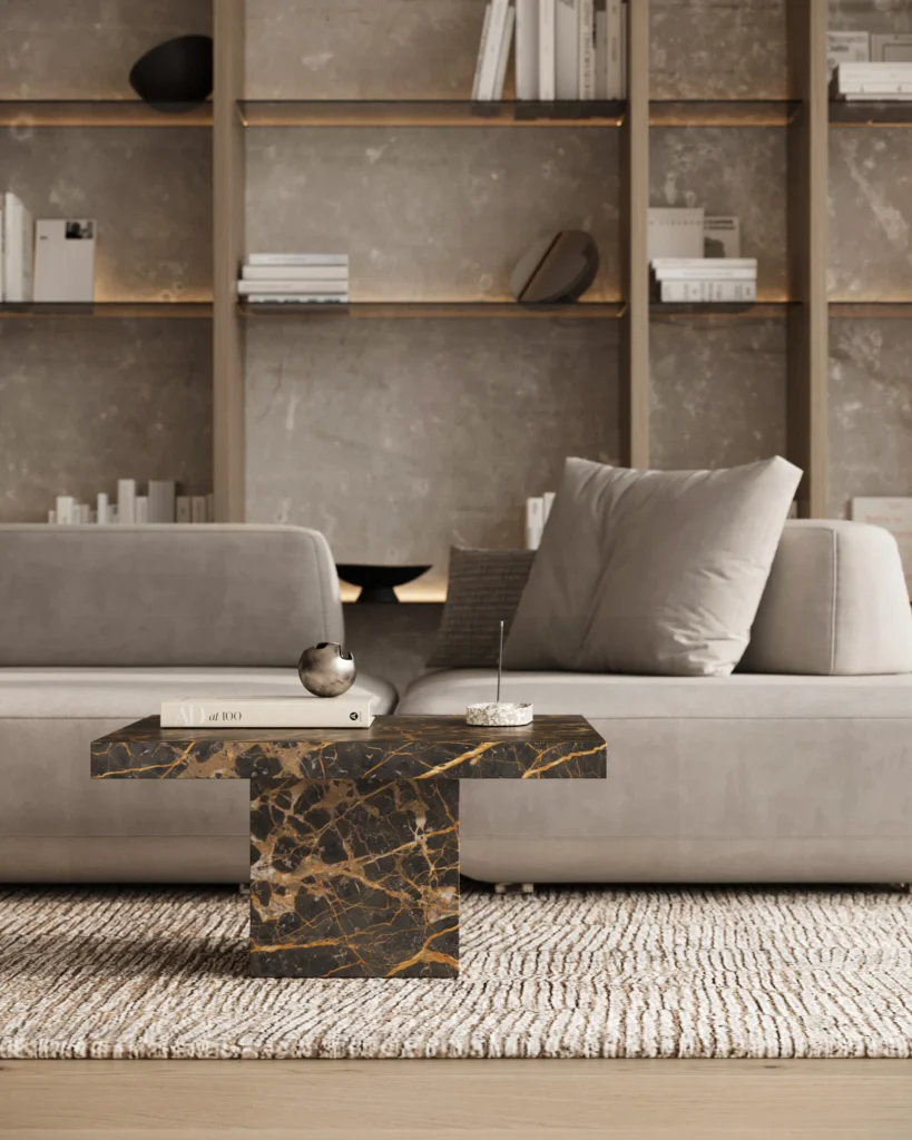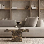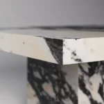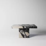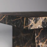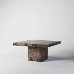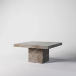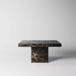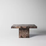 Podseća na klub sto Imperio, a odlikuje prepoznatljivim, monumentalnim dizajnom sa masivnom pločom kvadratnog oblika. Ploča sa gerovanim ivicama daje osećaj čvrstoće i luksuza, dok dve kockaste baze pružaju stabilnost i vizuelni balans. Minimalistički pristup u kombinaciji sa bogatim prirodnim kamenom stvara sofisticiran komad koji unosi luksuz i eleganciju u svaki prostor. Ovaj sto je idealan za one koji cene jednostavnost, stabilnost i vrhunski dizajn.
