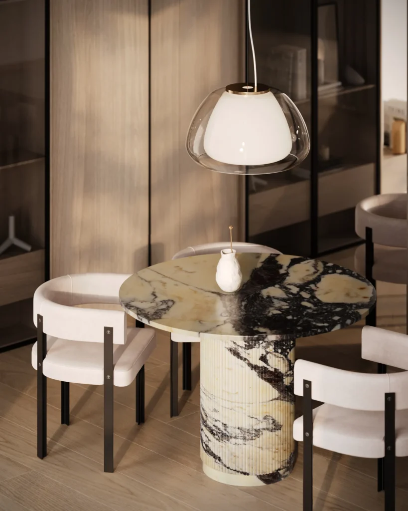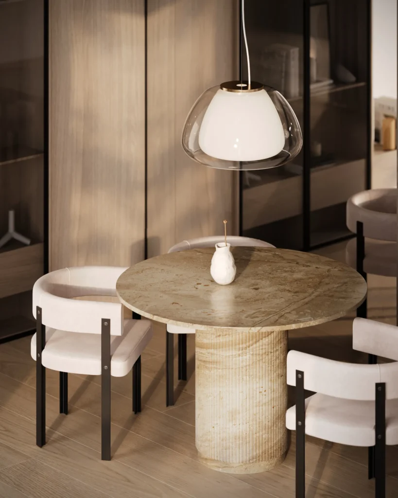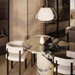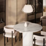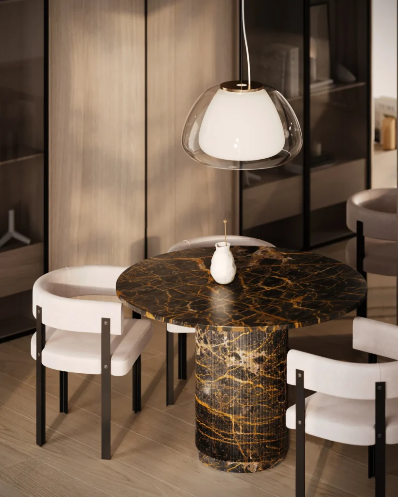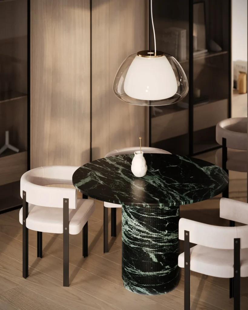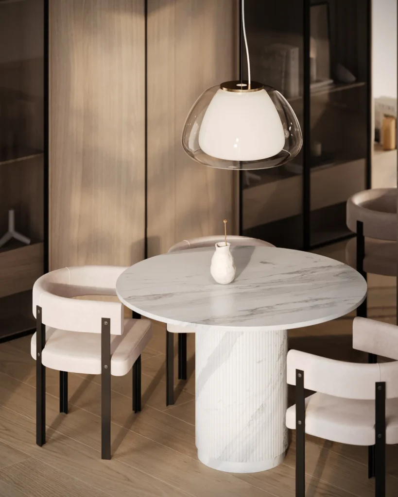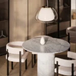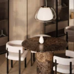 Trpezarijski sto Rondo karakteriše se izuzetnim dizajnom sa masivnom konstrukcijom koja je izrađena od osmougaonih segmenata, što mu daje specifičan i elegantan izgled. Ova jedinstvena konstrukcija pruža stabilnost i čvrstinu, dok u isto vreme stvara vizuelni utisak modernog luksuza. Ploča stola ima oblog oblik, što dodaje mekoću i harmoničnost celokupnom dizajnu. Rondo sto je idealan izbor za one koji žele da unesu sofisticiranost i snažnu, ali elegantnu formu u svoj trpezarijski prostor.