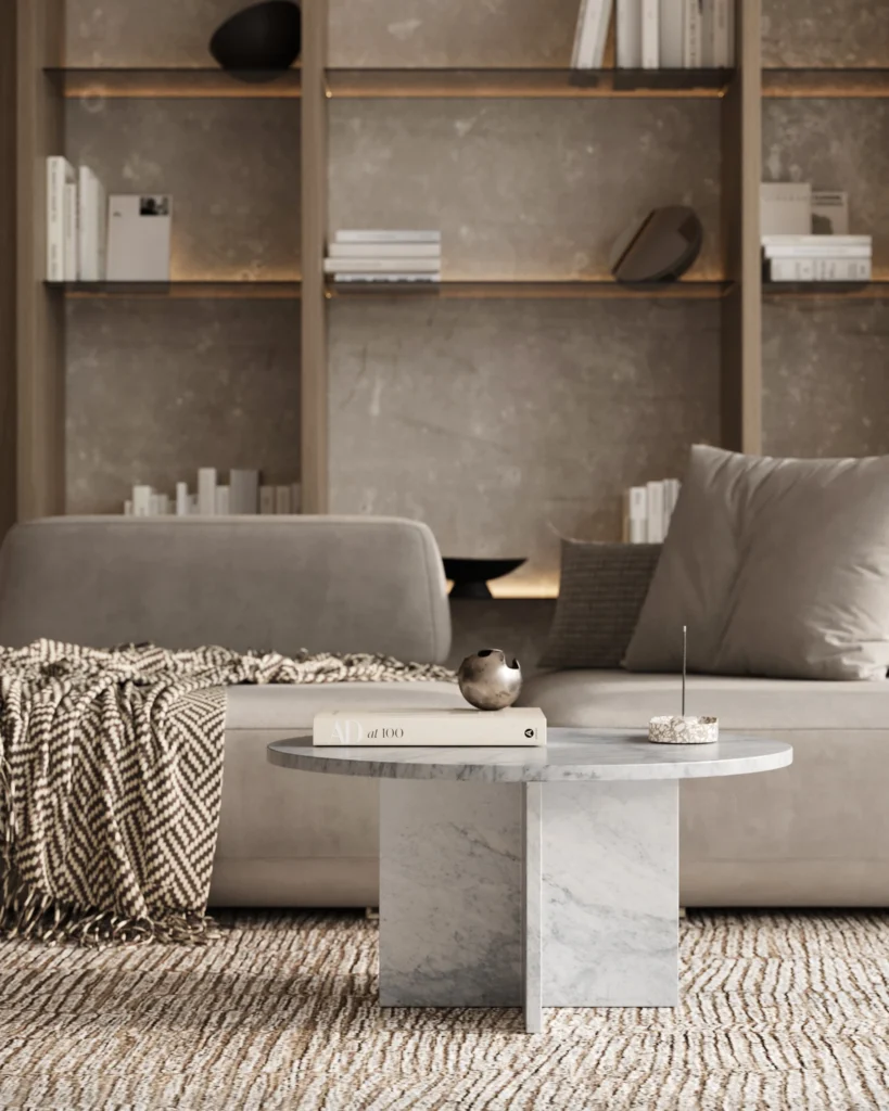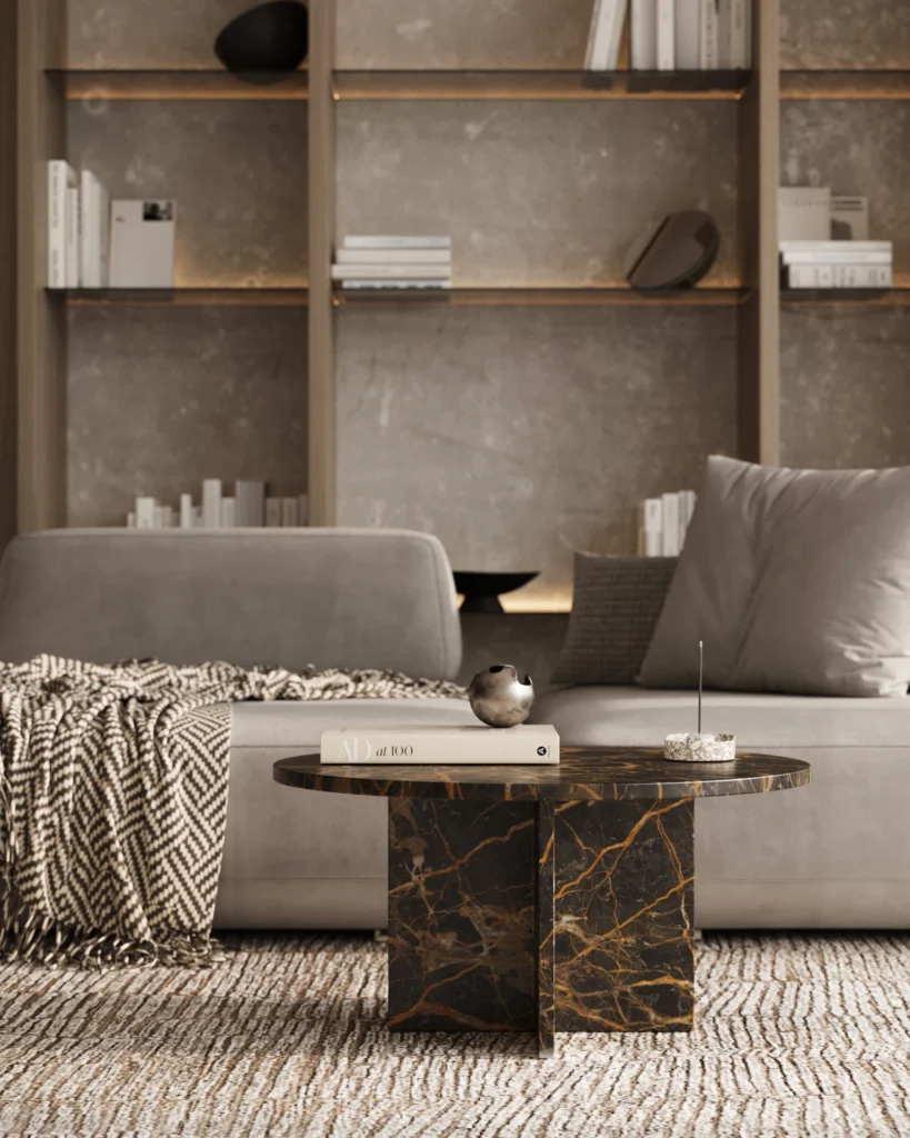 TERRA je klub sto od mermera donosi savršen balans između prirodne elegancije i funkcionalnosti. Bilo da ga koristite kao centralni komad u dnevnoj sobi ili kao praktičan dodatak, njegova minimalistička forma i vrhunski materijali unose notu luksuza u svaki prostor. Uz različite dimenzije i širok izbor mermera, lako se prilagođava svakom enterijeru i stilu. Napravljen je od tri segmenta, tako da su i postolje i sama ploča stola uradjeni od istog materijala.